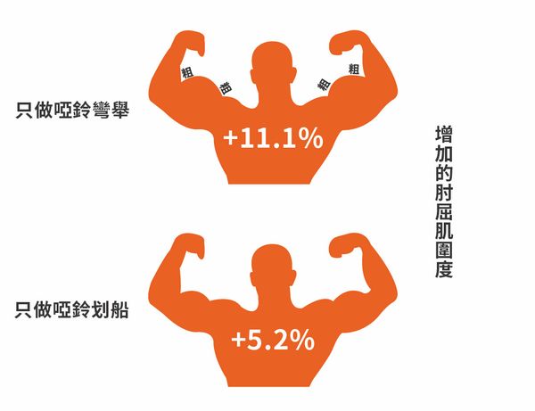在去年的這篇研究 [註1] 提到,二頭彎舉所能創造的二頭肌圍度,竟然是啞鈴划船這種多關節動作的兩倍!